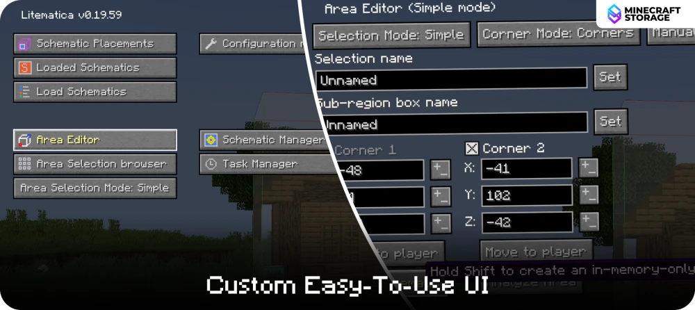 Copy and paste builds between different worlds, share builds as files with your friends. Project holograms to make building complex contraptions feel like a breeze!