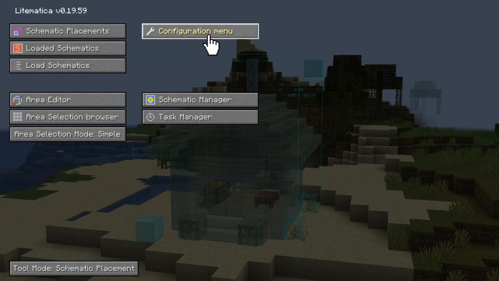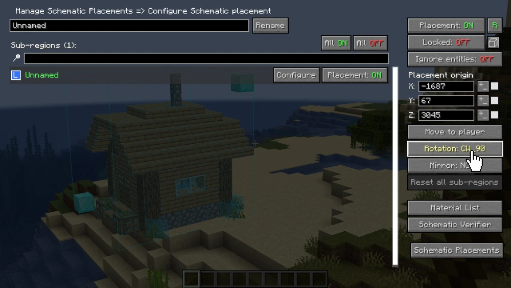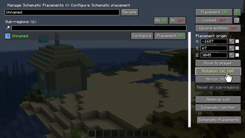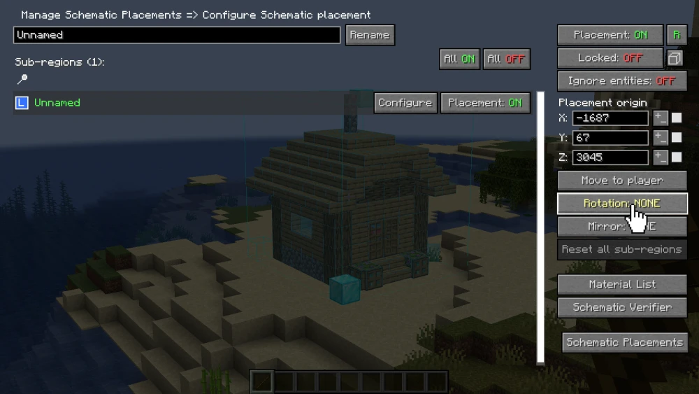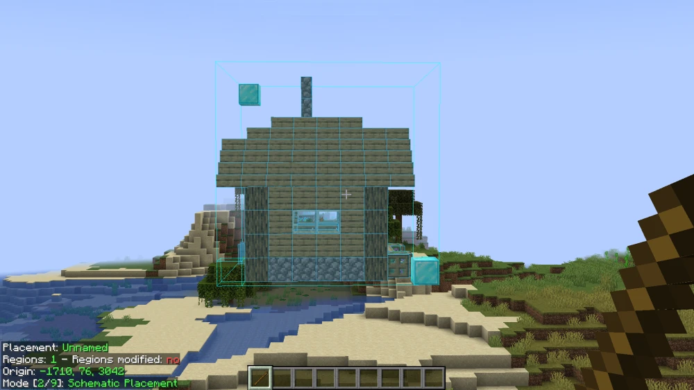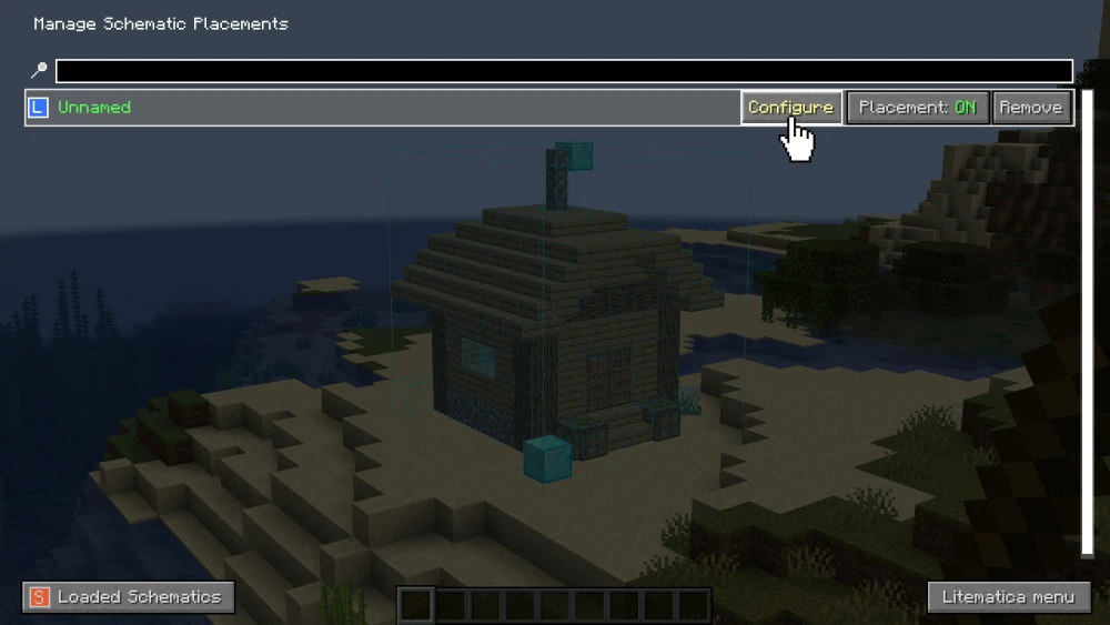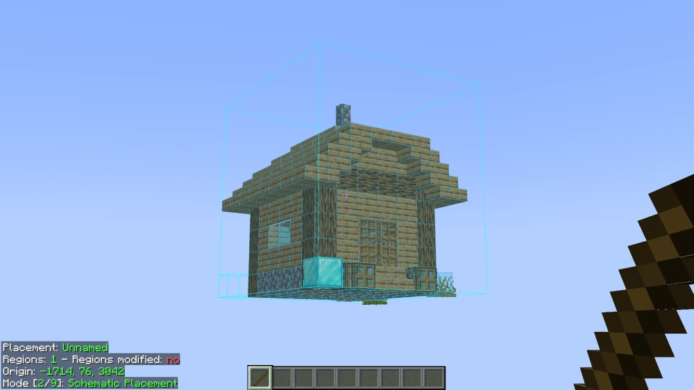 NOTE: The schematic you have saved must now appear as a .litematic file in the .minecraft/schematics folder. You can also add other .litematic files to this folder to import them into your game.