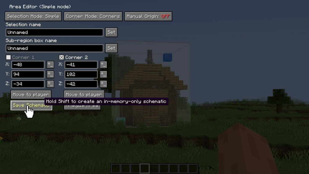 Once you have selected the required area, the next step is to save the selection. Areas selected using the Litematica mod are saved as schematic files. Let us take a look at how you can save a schematic using the Litematica mod.