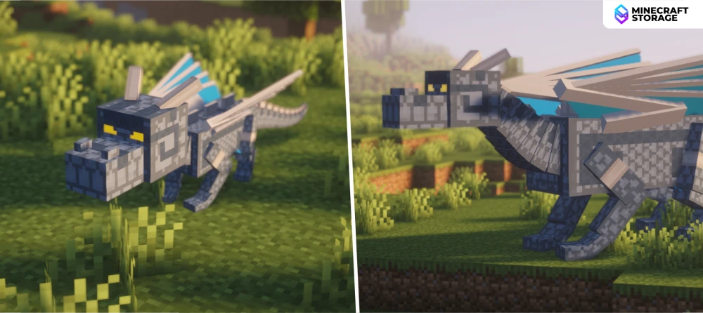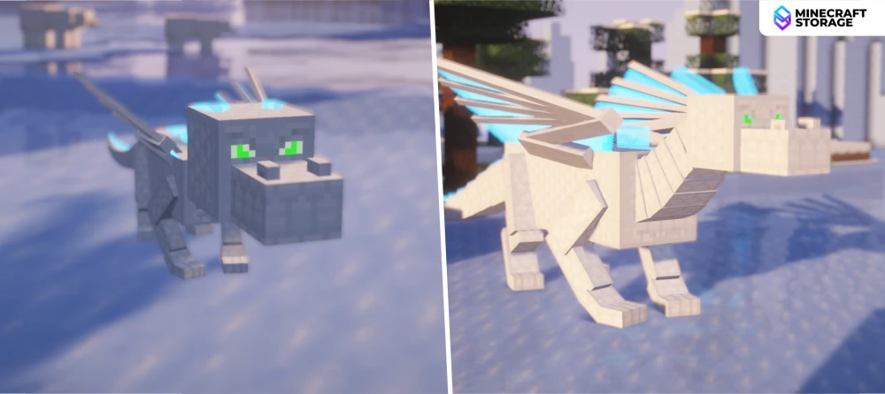 The ice dragon has a majestic looking white-blue appearance, which makes it one of the most beautiful dragons added by the mod. This dragon has the ability to convert any water beneath it into ice blocks.