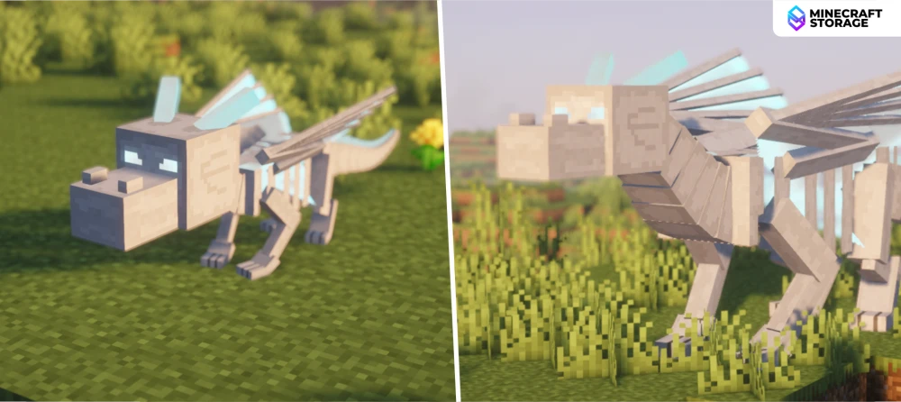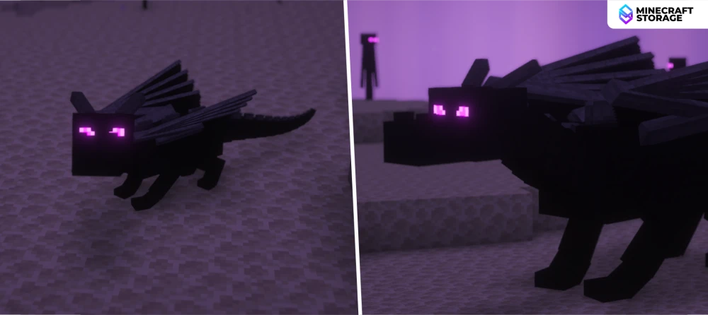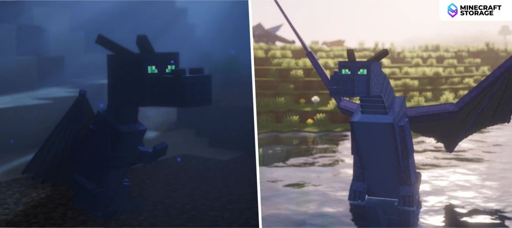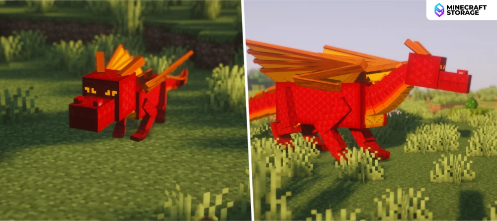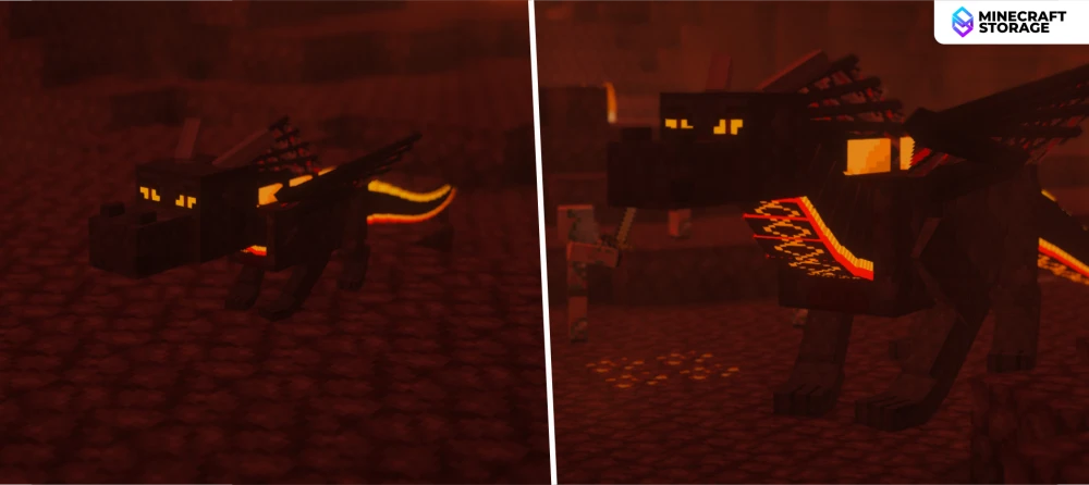This dragon has a dark red appearance with glowing detail on them. Just like the fire dragon, the Nether dragon too is immune to fire damage.
