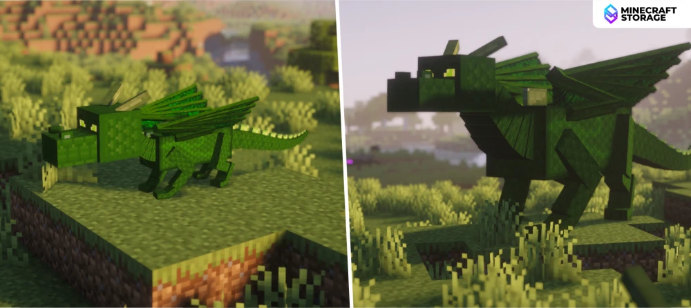 Once hatched, a baby forest dragon will spawn. This baby dragon will then grow into an larger adult Forest Dragon. This dragon has a unique green appearance, which will help camouflage in green biomes.