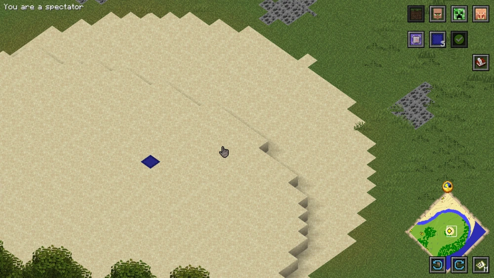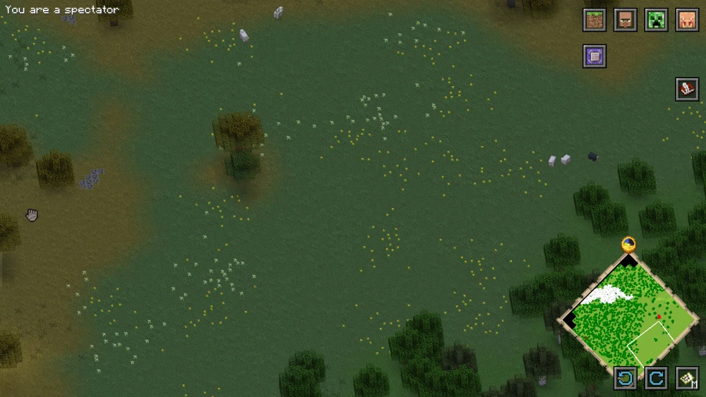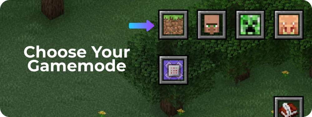 Clicking on the grass block icon shown in the image will allow you to switch your game mode. This button will be located at the top-right corner of your screen.