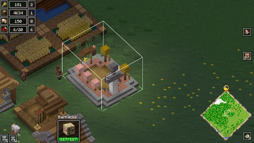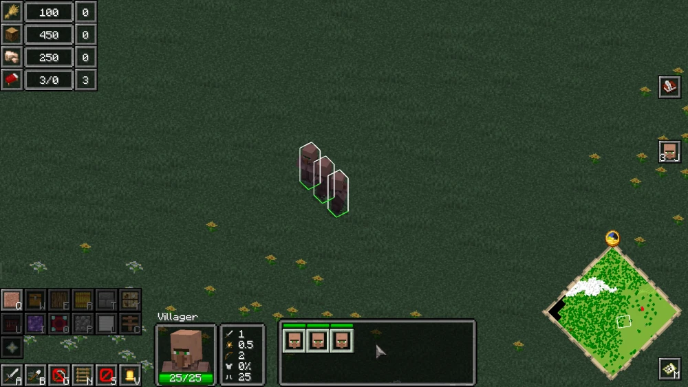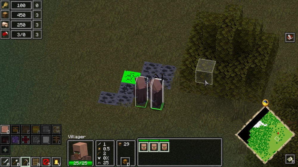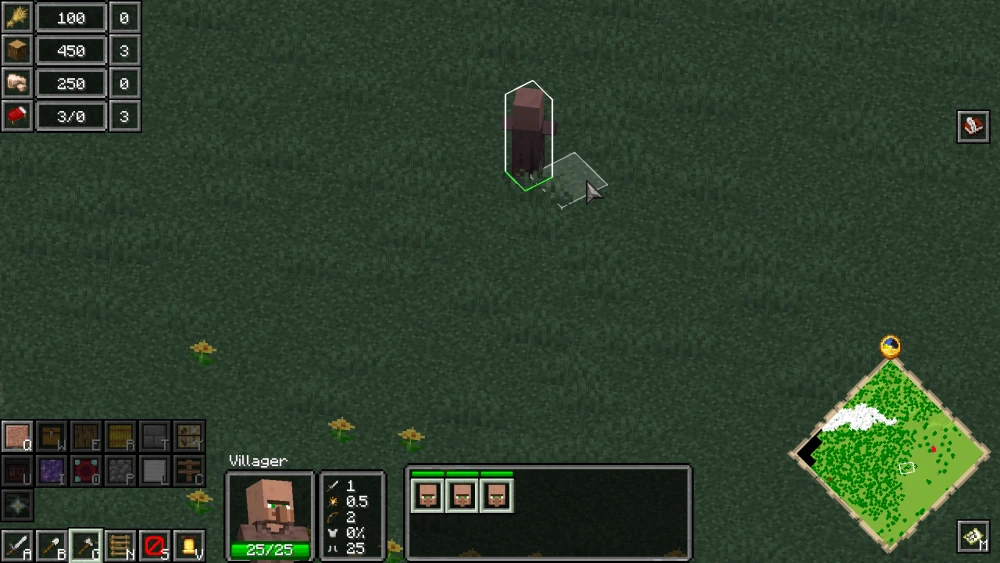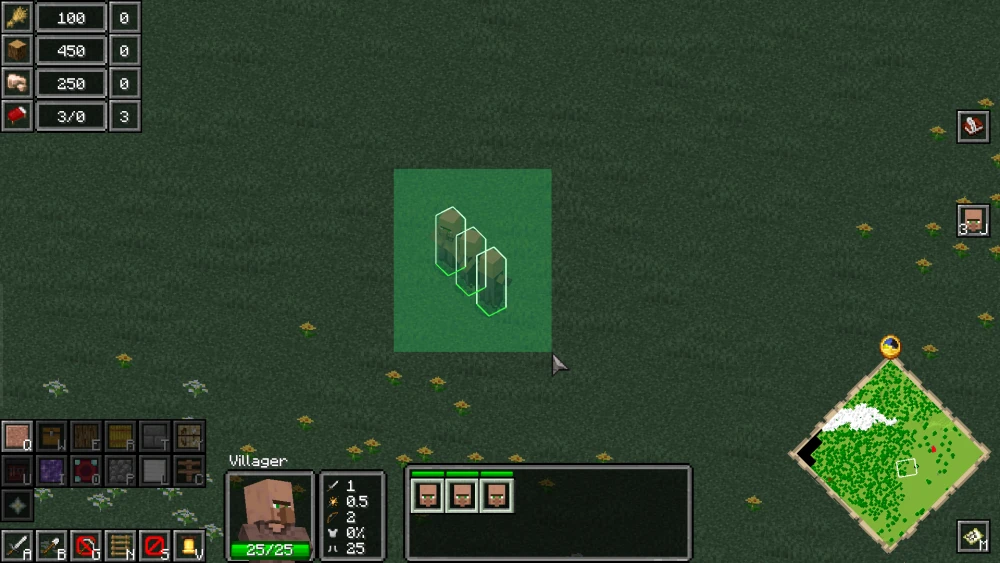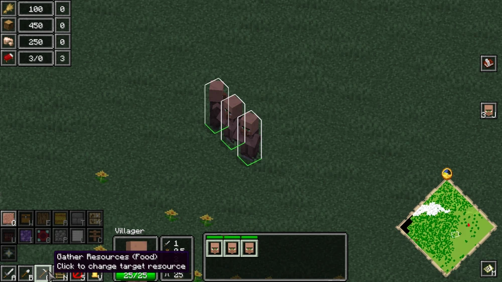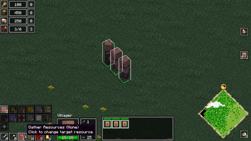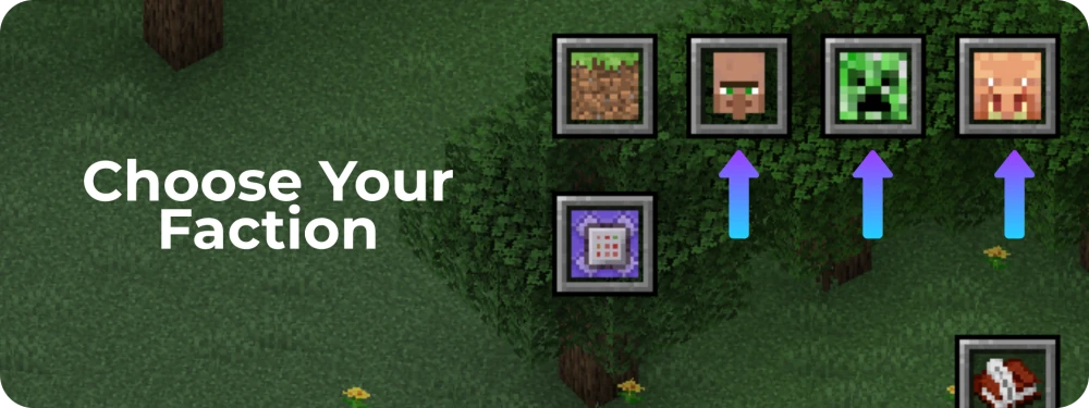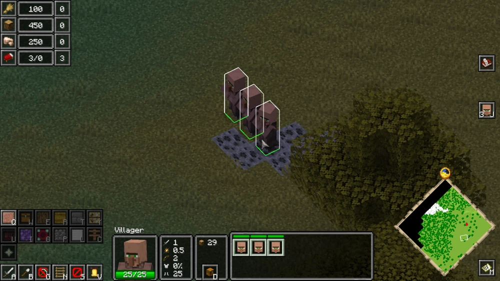 Based on the faction you choose, you will be allows to deploy three mobs. For this guide, we will be playing as a villager faction, where we begin with three villagers. The mechanics are similar independent of the faction you choose.