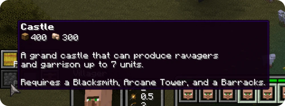 You can build a grand castle to improve the visual aesthetics, as well as get access to summoning strong mobs for defense, such as ravagers and garrisons.