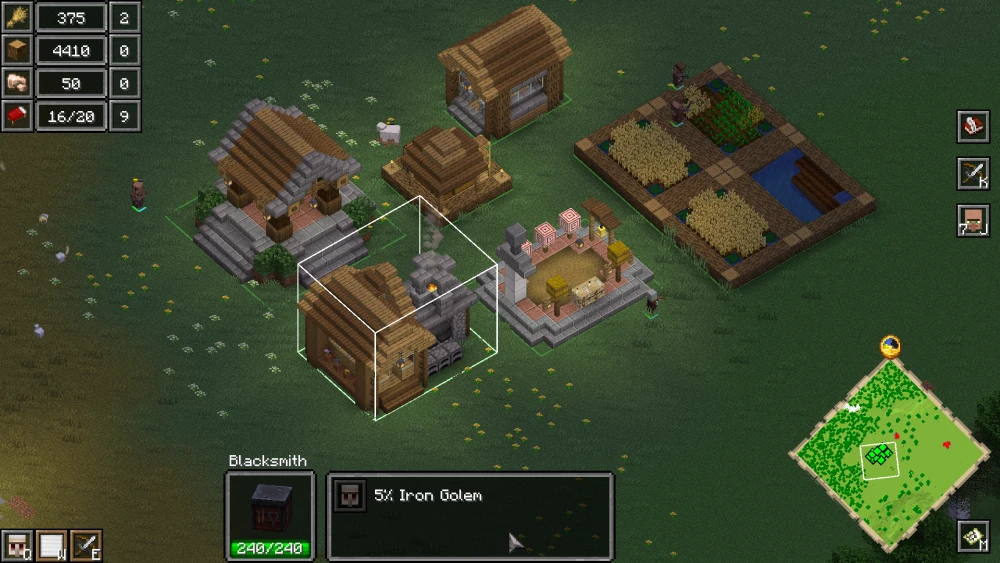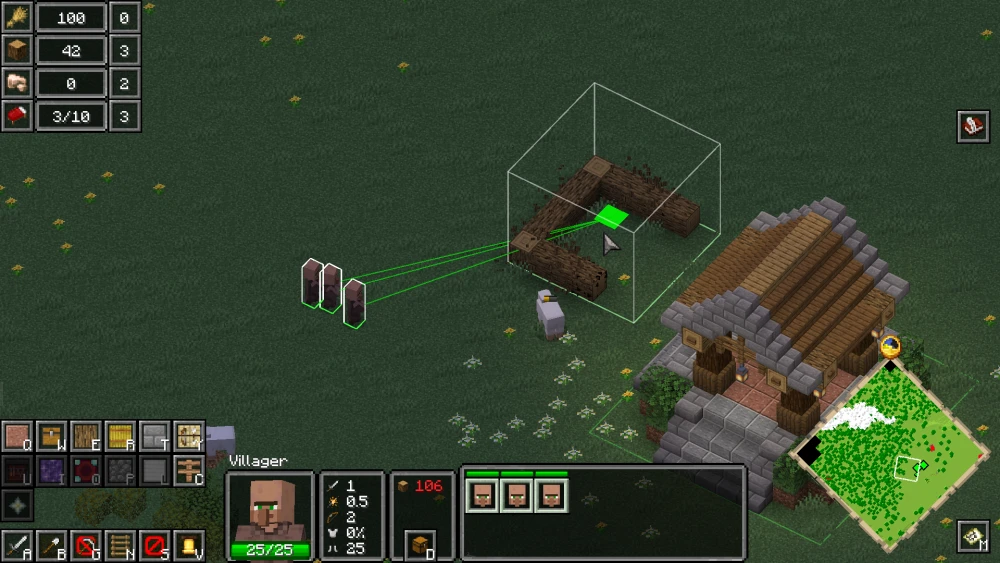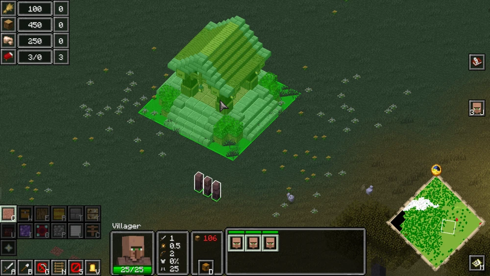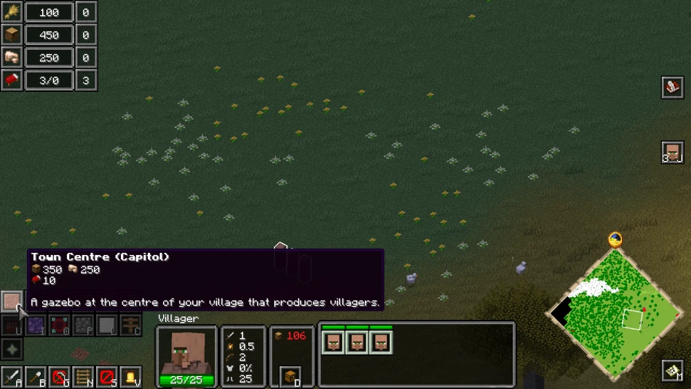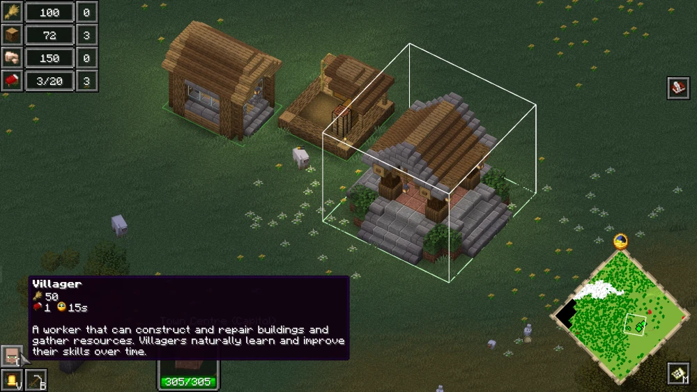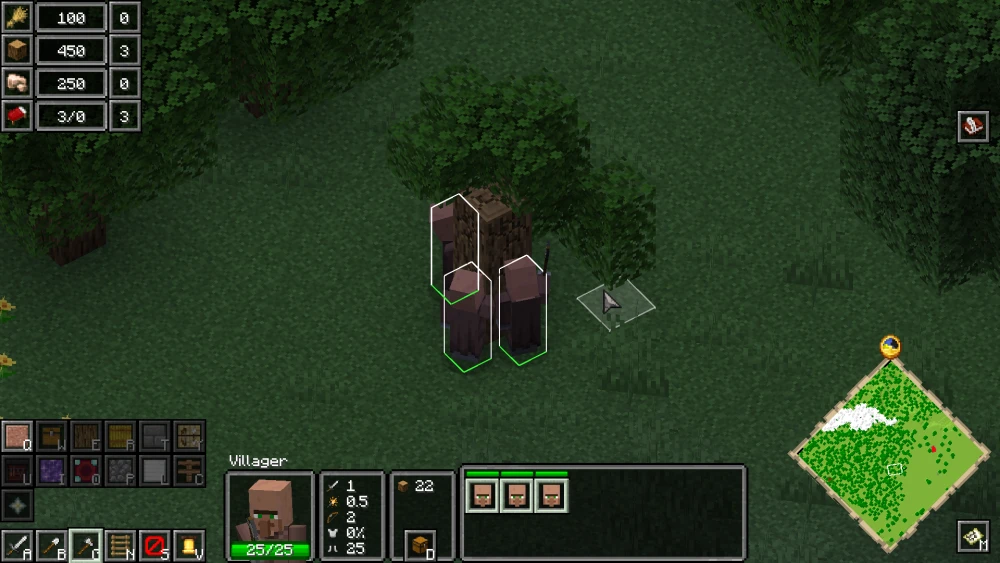 The Villager Faction will allow you to begin with three villagers. Villagers will be your core worker, and every build in your faction will be village themed, with wooden building blocks.