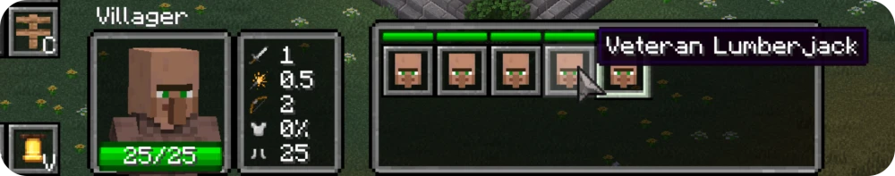 For example, a villager who has been chopping down trees and collecting wood for a long time will be upgraded to a veteran lumberjack. Veteran lumberjacks can undertake any profession that a regular villager can, but deploying them to collect wood would be the most efficient choice.