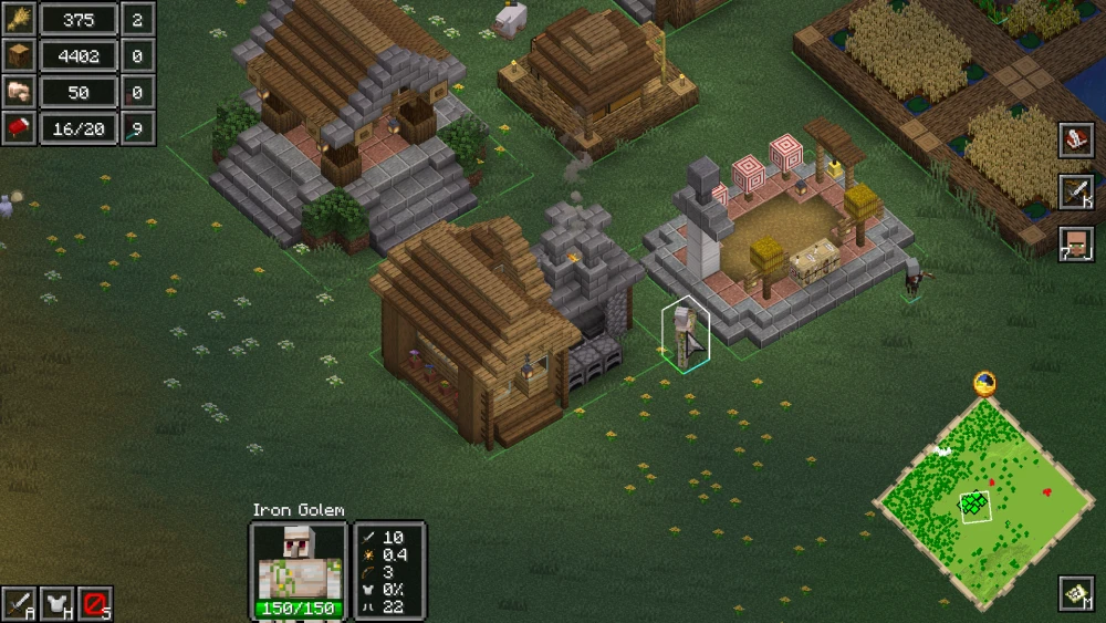 By selecting the blacksmith structure, you can access the button to summon iron golems.
