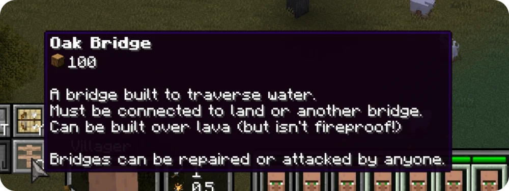 If a location you are interesting in has a water body or terrain gaps obstructing the way, you can strategically place bridges to make them more accessible.