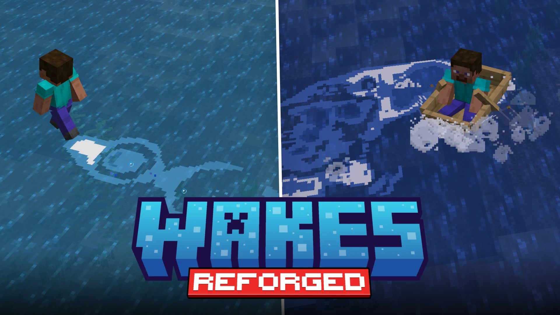Water in Minecraft often feels lifeless. It flows in a very blocky manner, does not splash, no real particle effects, nothing! The Wakes Reforged mod is here to make interacting with water a lot more detailed.