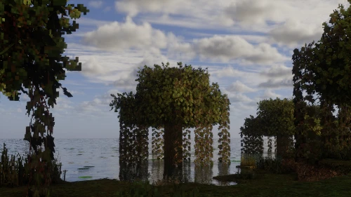 Добавляет всплески и пену на воду. Прыгни в воду, катайся на лодке и наблюдай за красивыми узорами, которые появляются на поверхности воды.